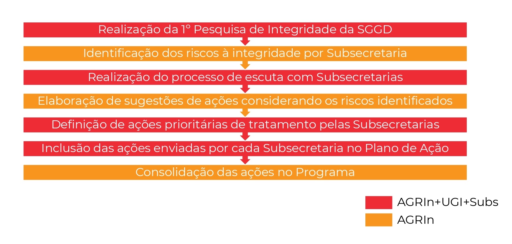 Conforme apresentado no evento, a figura abaixo evidencia todas as ações da AGRIn e em conjunto com a UGI e Subsecretarias da SGGD para fins de fortalecimento do Programa de Integridade: