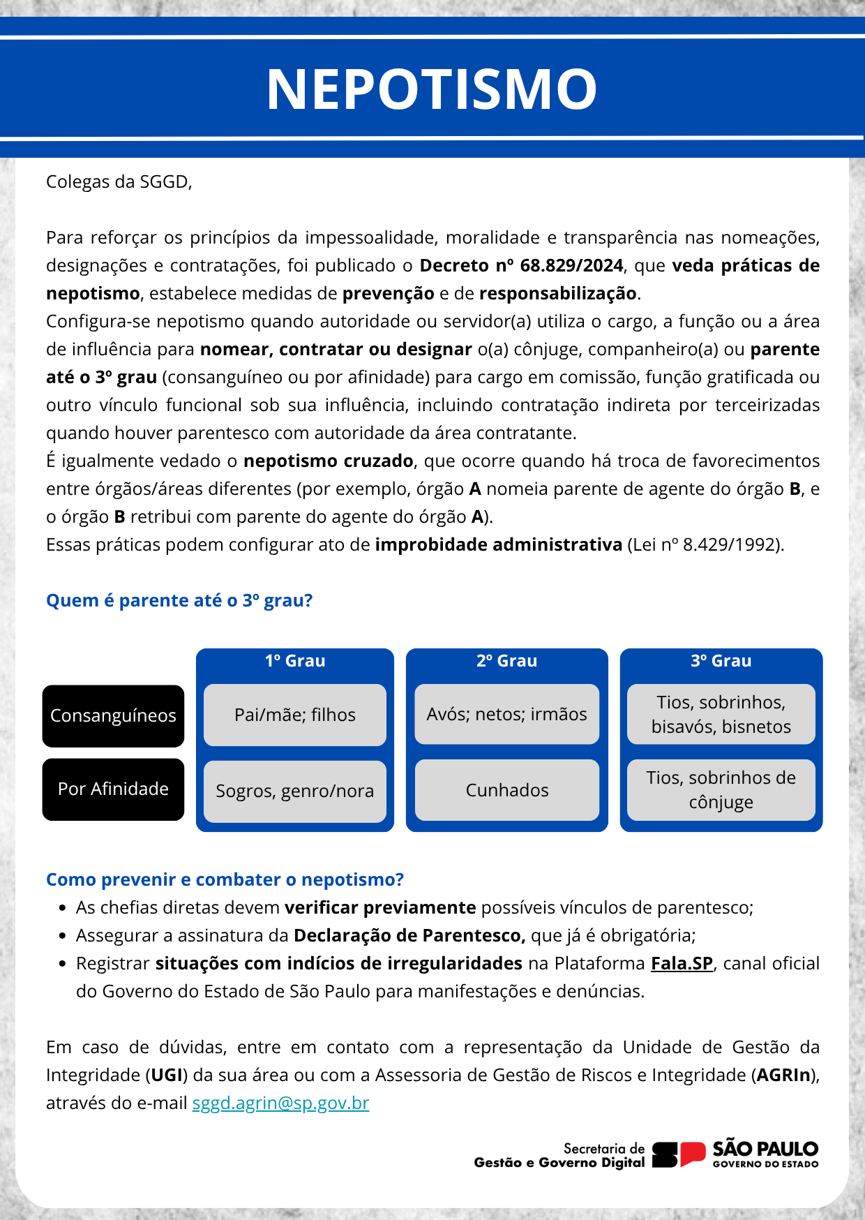 Vedação de praticas de nepotismo, prevenção e responsabilização